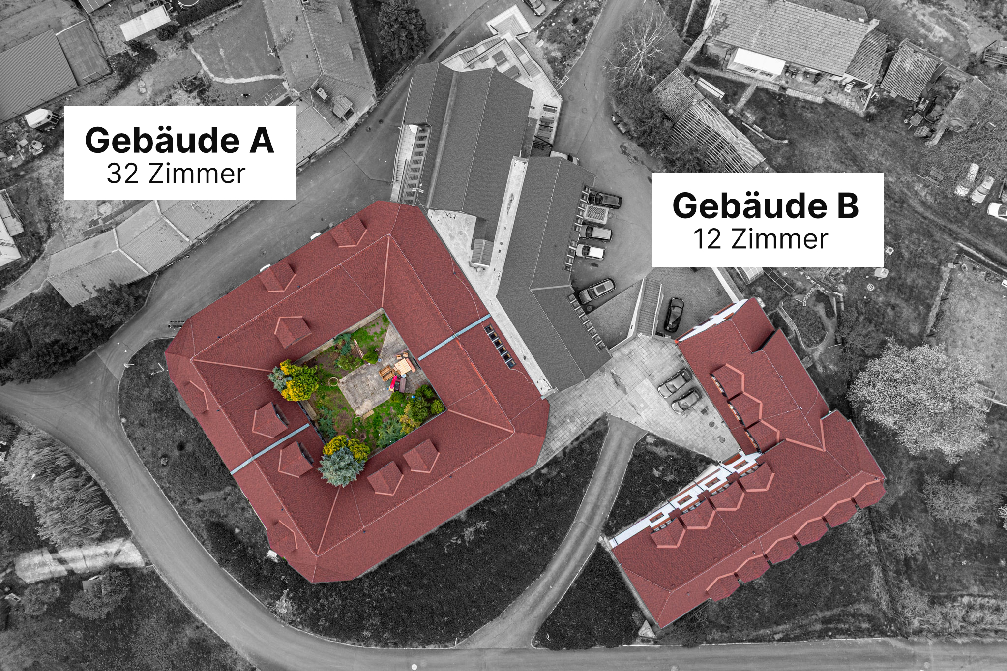 Im Hotel gibt es insgesamt 44 Zimmer – 32 Zimmer im Gebäude A und 12 Zimmer im Gebäude B.
